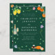 Celebrate your love in style with this boho chic watercolor wedding invitation, featuring vibrant hand-painted bohemian botanicals and a refreshing European citrus and wine theme set against an elegant dark emerald green background.