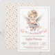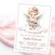 Convite de baby shower do Dia dos Namorados com adorável anjo bebê menina querubim e corações rosa em um fundo de coração boho. Funciona para o Dia dos Namorados, querido e boho, ou qualquer baby shower de menina. Basta adicionar os detalhes do seu evento.