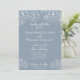 Convite botânico floral elegante para casamento floral com iniciais no verso. Belo desenho da safra de leigos brancos, colocado sobre um fundo azul empoeirado com roteiro branco e letras em negrito com um repetido desenho branco de peões no verso. Mantenha os textos genéricos e personalize com seus nomes e a data ou use seu próprio texto. Design minimalista elegante com um sentimento romântico de feitiço. Se precisar de ajuda para fazer de quaisquer alterações, envie-me um e-mail para desigsbykatz@gmail.com e terei todo o prazer em ajudar.