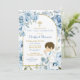 Boho Dusty Blue Floral Boy Rezando Primeiro Convite Comunitário