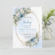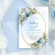 Convite Boho Dusty Blue Flowers Gold Script Baby Shower