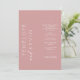 Este convite apresenta uma tipografia moderna que dá uma tipografia serif de bloco simples e limpa, com fundo rosado empoeirado. A simplicidade e a design limpa deste convite funciona bem com todos os temas de casamento e definitivamente uma adição excelente ao seu casamento. Tente se tornar ecológico com este convite moderno, tudo em um, ecológico, reduzindo o RSVP adicional e os cartões de detalhes. Basta adicionar seu próprio código QR à parte traseira do convite para seus convidados para RSVP e descobrir mais informações sobre seu casamento. Personalize os nomes e o texto em apenas alguns passos fáceis e personalize o cartão de convite com sua foto do casal feliz para lhe dar um toque exclusivo e pessoal. Note-se que a tipografia elegante dos textos, "e", "Details+response", o gráfico cardíaco e outros elementos gráficos não pode ser editada, eliminada ou movida. Está fixo. Se precisar alterar a cor, você pode personalizar o cartão de convite. Você pode personalizar e personalizar o convite para ajustado das suas necessidades de evento de casamento e clicar em personalizar o convite. Você pode personalizar facilmente este convite com seu próprio texto e compartilhá-lo com seus convidados digitalmente — seja através de texto, email ou mídia social. Se preferir, você também tem a opção de enviar uma versão impressa para seus convidados. Ou, você pode fazer ambos — enviar uma versão digital e acompanhar com uma cópia impressa para um toque pessoal!