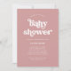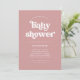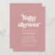 Este convite simples e de chá de fraldas boho apresenta tipografia branca e retrô num fundo cor-de-rosa rosa empoeirado.