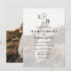 Revele o charme da sua celebração com o nosso Convite de Casamento com Foto Personalizada e Monograma Floral Boho Elegante. Este design apresenta uma foto discreta em ambos os lados, permitindo que a tipografia preta elegante do convite se destaque contra um delicado monograma floral. Equilibrando sofisticação com um toque boêmio, este convite promete uma introdução estilosa e personalizada ao seu dia especial.