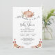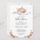 Lindas flores de aquarela quente e quente e quente com verde-musgo, Siena e folhagem castanha. "BOHO Fall Pumpkin Floral Autumn Leaf Pampas Grass Baby Girl Invitation." Paleta colorida de terra de tendência com pêssego, cobre, terracota, âmbar, siena e verde-muda com marfim e flores de pêssego. Toda a trabalho de arte foi pintada e gráfica desenhada por uma artista e designer internacionalmente licenciada, Audrey Jeanne Roberts. Direitos autorais.