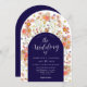 Marinho Blue and White boho Fall floral Wedding Invitation with Wildflower Arch - Editable Boho Floral Modelo - Defina o tom para o seu casamento de outono com este marinho de arca de flor silvestre azul e casamento outono branco, uma bela mistura de charme sazonal e elegância eterno. Apresentando flores de aquarela pintadas manualmente dispostas em volta de um arco gracioso, esta design apresenta uma paleta quente e romântica de cor laranja queimada, terracota, creme de marfim, pêssego, coral, roxo, amarelo, cinza queimado e rosa suave — perfeita para uma celebração de outono. A combinação da escrita azul-marinho profunda com a tipografia moderna num arco branco limpo e nítido adiciona um toque clássico refinado, enquanto os florais brancos trazem um talento pessoal e boêmico. Esta design é ideal para casais planejando um casamento rústico, ao ar livre, jardim ou de temas bóticos. Personalize facilmente todos os detalhes essenciais do seu casamento com o modelo editável simples de usar — não é necessário nenhum software ou experiência de design especial. Criado com a obra de arte original da artista Catherine Sweetman, este convite oferece o equilíbrio perfeito entre beleza inspirada na natureza e design sofisticada, criando uma sensação quente e acolhedora para o seu grande dia.