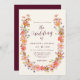 Burgundy e creme de marfim Boho Casamento outono floral Convite com a cor d'água pintada manualmente Wreath Wildflower, roteiro elegante e código QR Comemore seu casamento de outono em estilo com este elegante burgundy boho caiam no convite de casamento moderno com uma coroa de flor silvestre pintada à mão em tons quentes e úmidos. Perfeito para um casamento temático rústico ou boêmico, este convite inclui ricas sombras de terracota, laranja queimada, creme de marfim, burgundy, pêssego e amarelo-ouro ideal para paletas de cor casamento outono. Desenvolvido pela artista Catherine Sweetman, este convite de casamento único apresenta uma bela coroa floral boêmica com flores silvestres e folhagem de cor aquosa em cores inspiradas no outono: número queimado, coral, castanho, rosa mole, verde e roxo. Colocada contra um fundo de burgundy profundo, a design é completada com sorvete de marfim elegante e roteiro de burgundy perfeito para um romântico casamento ao ar livre ou vinhedo. Quer você esteja planejando um casamento em setembro, outubro ou novembro, este convite floral de casamento combina com casamentos de celeiro, cerimônias de florestas, locais de montanha ou recepções rústicas ao ar livre. Uma escolha de excelente para casais que buscam um design artístico inspirado na natureza, com charme de feitiço. Totalmente personalizável e fácil de editar, este modelo permite personalizar todos os detalhes do seu dia especial. Faça uma bela primeira impressão com este convite moderno, mas eterno, ao casamento outono.
