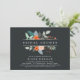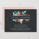 O chá de panela gráfico apresenta flores boho-do-país e verde espreitando atrás do "chá de panela" em letras elegantes em um rico fundo de carvão que é perfeito para o final do verão ou outono. Personalize com seu chá de panela e detalhes do registro abaixo. Cartões inversos a rosas sólidas.