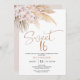 Boho Floral Com Pampas Sweet 16 Birthday Invitation Sweet bohemian floral Sweet 16 aniversários com um arranjo floral de blush com grama pampas. O título é uma imagem de cobre falsa que pode ser removida.