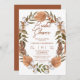 Graus secos e design floral de alagadiça com tons brancos e mutados de terracotta, verde e design de convite de "Chá de panela" mocha.