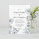 Design botânico elegante em aquarela. Apresentando eucalipto e elementos florais em uma paleta de cor verde e azul empoeirada. Arte única e original criada para seu dia especial. Divirta-se personalizando esta modelo para fazer o convite perfeito para o casamento.