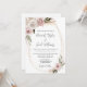 Este elegante convite de casamento floral cor-de-rosa é perfeito para um elegante primavera ou casamento de jardim de verão. O design apresenta uma bela aquarela branca e florais cor-de-rosa pincelados com grama-pampas, palmas secas e verde-eucalipto. Este é um esquema perfeito para um casamento ao ar livre. Faça este convite seu, incluindo seus nomes e todos os detalhes do seu casamento. Para mais personalização, use a ferramenta design avançada para modificar este modelo.