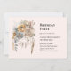 Convite de aniversário com um bonito buquê de flores em cores neutras de castanho, pêssego e laranja. Um apanhador de sonhos com penas adiciona um elegante talento místico.