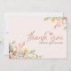 Boho Cartões de agradecimentos de Casamento do Jardim Botânico. Este na moda e elegante cartões de agradecimentos de casamento apresenta flores silvestres de aquarela, folhas, libélulas em paleta de aquarela macia de rosa, azul amarelo e verde. Perfeito para obrigado do seu convidado após primavera, verão ou casamentos outono Encontre itens correspondentes na Coleção Flores e Dragonfly.