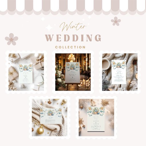 Uma mistura sonhadora de ornamentos de pasta azul, estrelas ouros e ramos de pinheiros foscos se juntam neste design de casamento no inverno boho. Uma paleta pastel e sotaques de presente pintados à mão evocam um espírito de feriado mágico e sereno — chico, calmo e aconchegante.