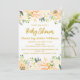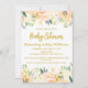 Convite Boho Gênero Chá de fraldas neutro Floral Dourado b