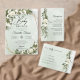 Convite Boho Green Olive wreath White rosas ela disse sim