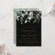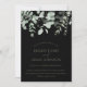 Boho Greenery Black Eucalyptus Invitation. Impressiona seus convidados de casamento com este convite de casamento elegantemente projetado com lindas folhas verdes de eucalipto em um impressionante fundo negro. Este Convite tem uma bela design de folhagem verde, com vibrações rústicas e botânicas, perfeita para o seu casamento rústico, verde ou eucalipto. A disposição mínima e moderna chama a atenção para os arranjos elegantes, verdes, de folhas de eucalipto, sobre fundo negro minimalista com uma delicada fonte verde-escura. Este convite vai dar o tom de um belo cenário de casamento rodeado de verde-prata, preto ou verde-sábio. Uma adição perfeita a qualquer celebração botânica ou rústica.