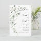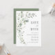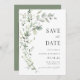 Boho Sage Greenery Botanical Olive Elegante Simples Casamento Salve A Data Convite. Um convite botânico minimalista feito no estilo boêmiano com elegante e simples botânicos verdes de vassoura em cor d'água impressa à mão. O fundo de aquarela verde é maravilhoso para casamentos de boho e casamentos verdes. Convites editáveis para primavera, verão, outono (outono) e casamentos no inverno.