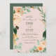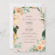 Um belo convite clássico de casamento convida seus convidados em estilo elegante. Este belo convite inclui tons pastéis macios e florais aquosos modernos verdes em tons de pêssego, branco, marfim creme, sábio e verde mais brilhante. Este convite de casamento personalizado coordena-se com nossa coleção floral de cheio botânico de artigos de papelaria, decoração e papel de evento.