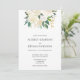 Convite moderno para casamento com flores brancas e neutras de aquarela cortada com sotaques de folhagem dourada (faux). Perfeito para casamentos de primavera e jardim.