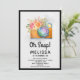 Convite Boho Laranja Câmera & Flores Aquarela Aniversário