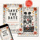 Convite Boho Letterpress Esqueleto aviso de data de casame