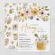 Welcome the arrival of a sweet bundle of joy with our charming Honey Bee boho baby shower invitation! Our design boasts a serene white background, adorned with the delightful phrase 'A little Honey is on the way!' Surrounding the invitation are delicate watercolor wild flowers and lush greenery, adorable honeybees fluttering about. The finishing touch is a lovely jar of honey and drizzle stick, adding a touch of elegance to this customizable party template. Our cottagecore golden tone palatte makes this invite perfect for celebrating in the spring or summer, and this theme is suitable for both precious little girls and boys. Don't miss out on buzzing about this sweet celebration!