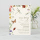 This whimsical watercolor baby shower invitation features cute insects (beetle, dragonflies, butterfly) & pretty flowers.