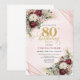 Celebrate an unforgettable milestone with this 80th birthday invitation, beautifully designed in a boho and bohemian style featuring soft watercolor blush and burgundy florals accented by an elegant gold frame. This refined design combines warmth, sophistication, and timeless charm—perfect for honoring a very special occasion.