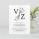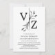 Convite Boho Minimal Black and White Leaf Monogram Wedding