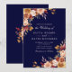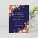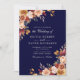 Eleve seus convites de casamento com nosso Convite de Casamento Floral Boho Moderno Azul Naval Laranja Queimada.