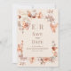 Anuncie seu dia especial com estilo com nosso Convite de Save the Date de casamento com monograma em mousse floral Boho. Este design elegante apresenta um fundo suave em tom de blush em pó inspirado no "Mousse de Mocca", adornado com delicados detalhes em dourado rosado e acentos florais cremosos. No topo, um monograma personalizado em tipografia chic e inspirada no boho adiciona um toque moderno e sofisticado.