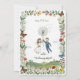 This is a boho-style wedding invitation featuring a simple, slightly naïve illustration of a couple flying with a dandelion. The design has a soft, romantic feel and suggests an adventurous kind of love—the beginning of a new chapter—without being overly serious. The overall look is playful, with colorful floral elements framing the design to keep it light and warm.