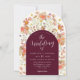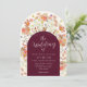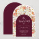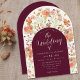Convite de Casamento de Outono em Borgonha com Arco Floral Boho de Flores Silvestres e Modelo de Letra Moderna Editável