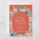 Boho cai no outono, chá de panela floral de aquarela em branco, com uma queda de bolho flores pintadas de tonalidades de terra em azul empoeirado, terracota, verde-sábio, laranja queimada, com rosas e peônias e verde sobre fundo de terracota escuro.