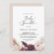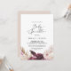 Este convite para o bebê bebezinho de boho pampas é perfeito para um chá de fraldas de verão. O design de aquarela floral apresenta uma burgundia boêmica e flores cor-de-rosa pinceladas com ranhuras de erva-pampas neutra e folhas de palma secas de ouro.