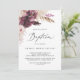 Este convite para o batismo de erva boho pampas é perfeito para um batismo de bebê de verão. O design de aquarela floral apresenta uma burgundia boêmica e flores cor-de-rosa pinceladas com ranhuras de erva-pampas neutra e folhas de palma secas de ouro.