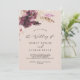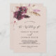 Este convite de casamento para o monograma de pêssego do boho pampas é perfeito para um casamento de verão. O design de aquarela floral apresenta uma burgundia boêmica e flores cor-de-rosa pinceladas com ranhuras de erva-pampas neutra e folhas de palma secas de ouro.