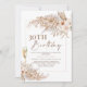 Boho Pampas Grass Floral Champagne Aniversário Convite para o aniversário de uma rapariga floral moderna, com um arranjo floral boêmico em tom natural, com erva-pampas, folhas de samambaia e rosas. O design também apresenta um quadro de linha fina que é removível. A cor na parte de trás deste chá de panela floral pode ser alterada.