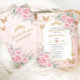 Convite Boho Pampas Grass Rosas Rosa Floral Quinceañera
