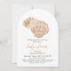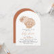 Uma sereia está a caminho! Este convite para o chá de fraldas apresenta conchas brancas, tons de terra e charme inspirado no oceano — perfeito para a sua celebração de verão. Personalize agora! 🐚 🧜 ♀️