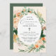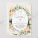 Lindos convites da Comunidade com um elegante tom pastel neutro, elegante e neutro, molhado floral botânico em tons suaves de pêssego, laranja, pincel suave, amarelos, e muitos tons de verde de sábio verde a verdes brilhantes e profundos. Seus detalhes personalizados são exibidos em um elevado layout tipográfico que coloca a doce garota na frente e no centro.