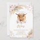 Convite Boho Pink Floral Pampas Grass Highland Cow Party