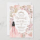 O convite da Quinceañera num estilo elegante. Rosas brancas e rosa-pinceladas, floral seca, palma e grama-pampas e uma menina de vestido bonito. Verifique o compro para este convite com garotas com diferentes cores de cabelo, tons de pele e mais variações.