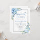 Convite Boho prateado geométrico azul-floral doce dezessei