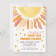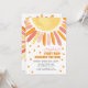 Celebre o primeiro aniversário do seu bebê com a sua aquarela e arranca design e um sol fofo no fundo com o seu rosto fofo. Dê a sua pequena luz do sol uma divertida e fofinha viagem de 1rua ao redor da comemoração do aniversário do sol com amor feito à aquarela, apresentando um sol amarelo com raios e pontos laranja e corais. Simplesmente personalize para torná-lo seu próprio - design neutro em termos de gênero, perfeito para rapazes e raparigas! As cores da fonte também podem ser alteradas no editor.