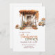 Reunir os entes queridos em estilo com este convite de Ação de Graças, feito com uma cor d'água editável, boho queimado laranja. Apresentando uma porca quintal de fazenda decorada com abóboras, folhagem e detalhes confortáveis do outono, esta design evoca a sensação de uma casa quente e acolhedora de férias. O olhar pintado à mão e a paleta colorida à terra trazem a essência do cottagecore e do charme de queda rústica. Perfeito para jantadas familiares íntimas, salgadinhos festivos ou festas de amizade.