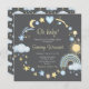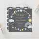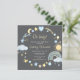 Este convite de chá de fraldas giro e caprichoso apresenta um arco-íris, nuvens, sol, lua e estrelas em azul e amarelo em fundo de cinza escura. O texto combina o script manuscrito e as fontes sans serif para uma aparência na moda e moderna. Isto é perfeito para um chá de fraldas temático do tempo.