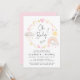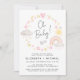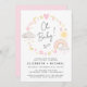 Casal de bétula branca, convite para chá, com aquarelas cor-de-rosa e amarela de um arco-íris, sol, corações, estrelas, luas e nuvens, "Oh Baby!" em um roteiro de na moda e os nomes da mãe e do pai e os detalhes do chá em simples tipografia.